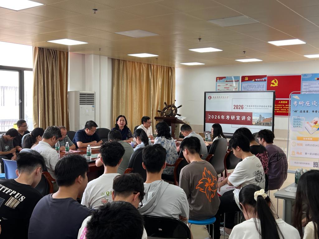 会上,院长岑健系统介绍了学院研究生教育概况,包括硕士点设置、师资力量、办学规模、就业方向及近年报考数据,并针对院校选择、专业前景、心态调整、奖助贷政策等学生关切问题细致指导。结合当前院校选择关键期,她建议同学们依据复习进度、科创水平等综合实力,理性评估择校择专业。随后,副院长张先勇、熊建斌结合各硕士点专业建设情况,剖析了考研重难点问题。