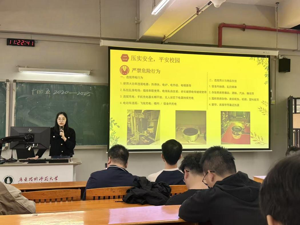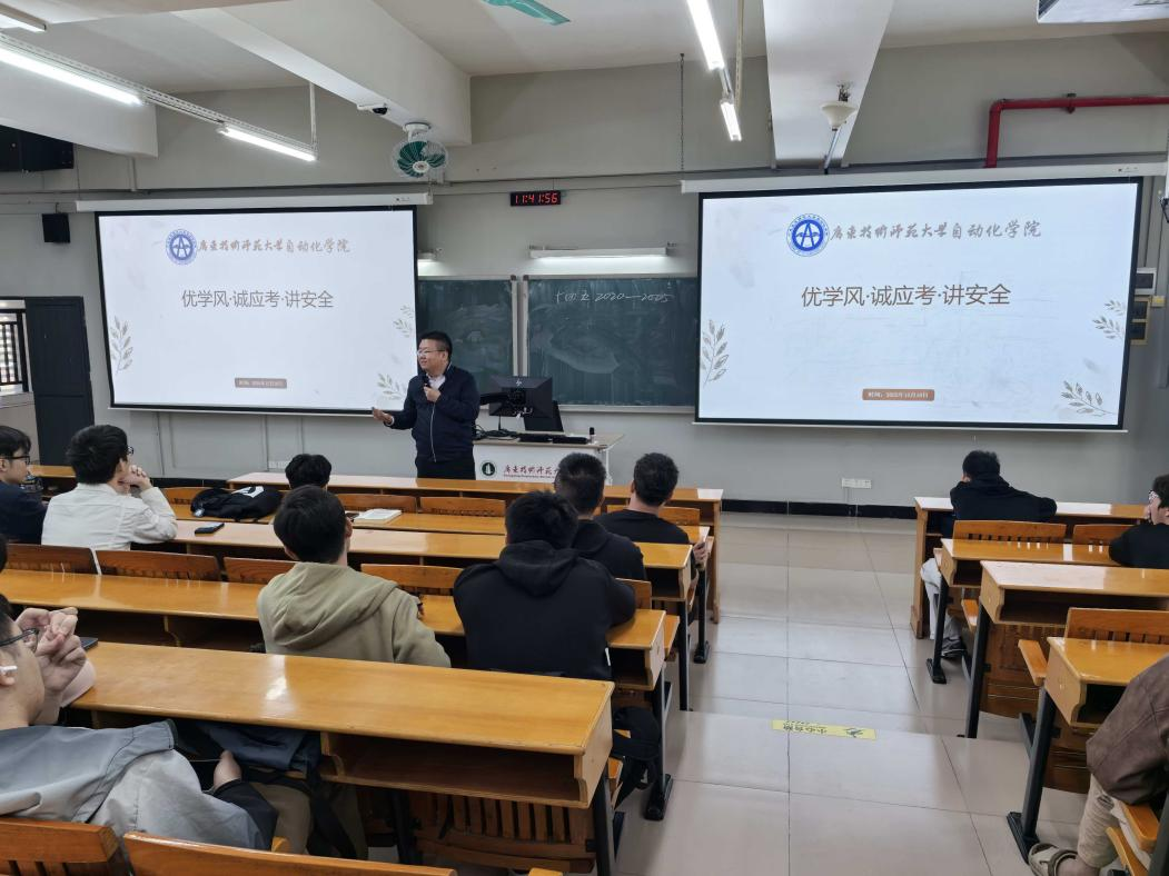 会上,蒋鹏结合时政案例阐述了科学理论思想的引领作用,强调了毛泽东思想和中国特色社会主义理论体系概论、马克思主义基本原理等思政课程的必要性及重要性,自动化学子应努力成为有思想爱哲学的工科生;通过电动汽车高速发展的事例指出了学生们主动提升自我、积极顺应社会变革、做新科技革命引领者的重要性。最后,陈诗雅解读了考试违纪作弊、宿舍安全相关制度与处理规定,强调了诚信立身的重要性与宿舍安全隐患可能导致的严重后果,引导学生树立正确考试观及宿舍安全观。