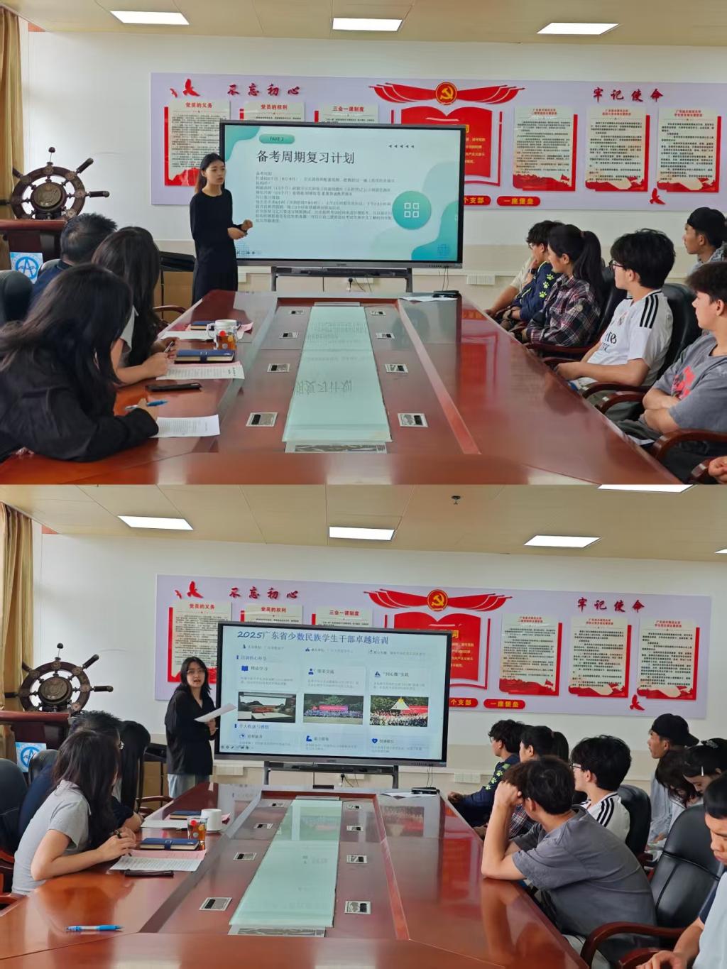 随后,2022 级顿珠永措同学结合自身备考经历,从笔试准备、面试技巧等方面,为同学们分享了入职西藏国家电网的宝贵就业经验;2024 级妮尕热同学则结合广东省少数民族学生骨干训练营经历与寒假社会实践,分享了青年成长与责任担当的心得体会。