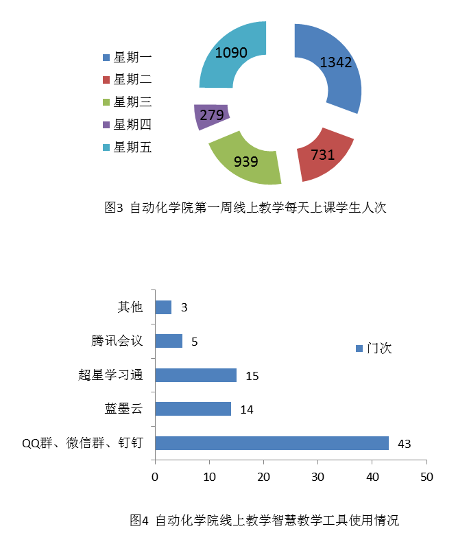 威廉希尔williamhill(中国)第一周上课学生合计为4381人次。任课教师熟练运用爱课程(中国大学MOOC)、超星尔雅、学堂在线等平台,使用智慧教学工具80门次。
