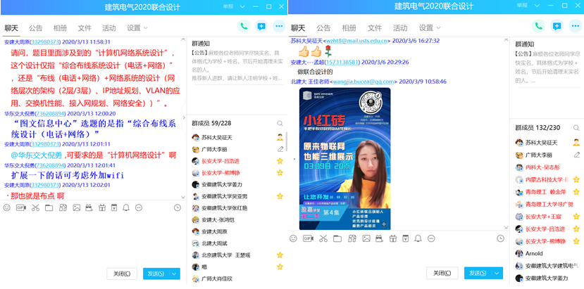 所有参加多校联合毕业设计的师生充分利用互联网和教育信息化资源,将毕业设计相关资料上传至百度网盘、QQ群,依托线上教学平台,通过微信、QQ、视频会议及电子邮件等方式增加线上交流,组织开展毕业设计各环节活动,保障毕业设计仍然按照原计划时间节点有序实施。各相关高校在相互交流,共同协作的基础上,还可通过开展毕业设计作品“评优”活动,在选择同一选题的高校之间引入竞争机制,促进其不断提升毕业设计水平和质量。