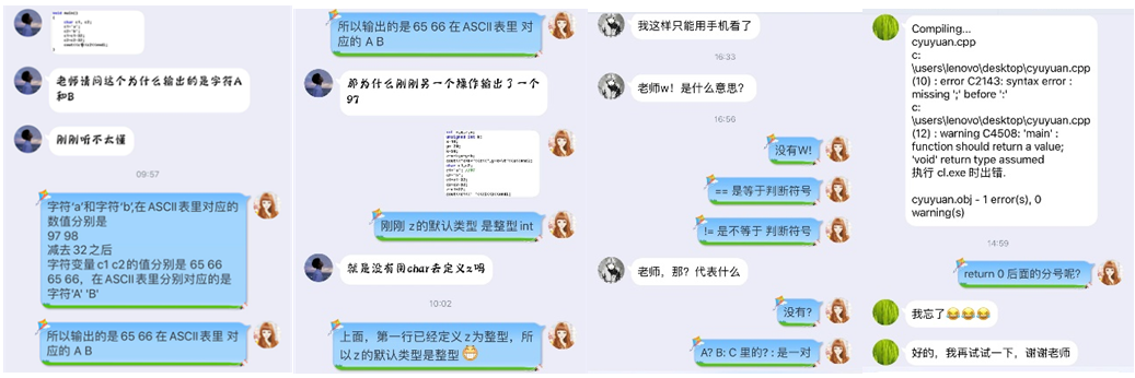 威廉希尔williamhill(中国)领导、教师们在第一时间积极筹备“停课不停学”的教学工作,学院《C语言程序设计》课程小组,也是积极进行“停课不停教,停课不停学”的线上混合式教学讨论。班勃老师去年参加混合式教学培训后,随即尝试结合超星学习通平台开展线下混合式教学,利用学习通进行考勤、课堂讨论、作业发放与批改、资源分享等。为疫情期间更好的开展的教学工作,保证教学质量,班勃老师主动向领导同事学习,进行沟通交流,最终经过多平台分析、比较,决定采用“基于QQ群课堂和超星学习通的混合式教学方案”。