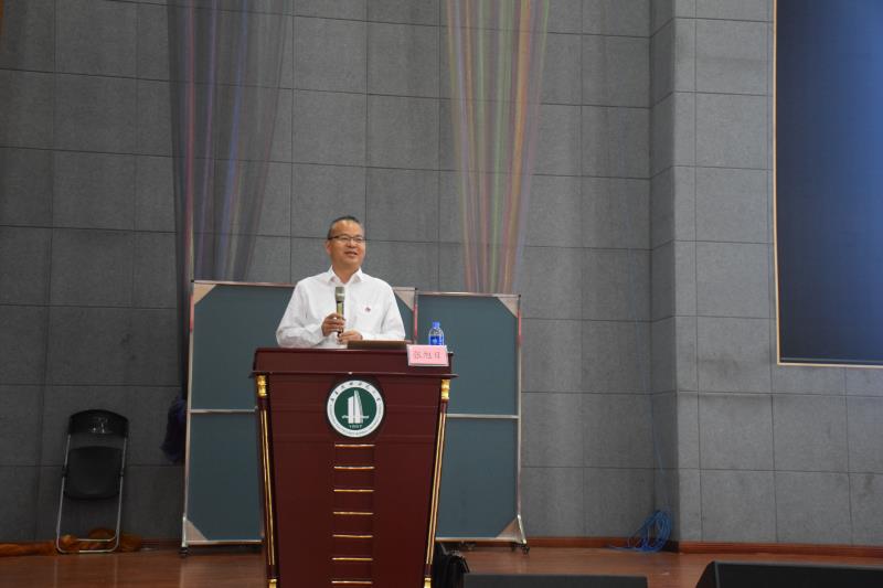 张旭日书记从浅谈《习近平谈治国理政》、把激昂的青春梦融入伟大的中国梦、做民主复兴大任的时代新人这三个部分讲述当代大学生为何要理想信念、如何坚定理想信念,怎样做好民主复兴大任的时代新人。并对2020级新生提出殷切希望,“建成社会主义现代化强国,实现中华民族伟大复兴,是一场接力跑,每一代人要接棒奋力奔跑,每一代人都要为下一代人跑出一个好成绩。作为站在历史交汇点上的新时代大学生,应该坚定自己的理想信念,要不断奋斗努力,夯实本领与锤炼品质,为实现伟大复兴梦不断奋斗。”