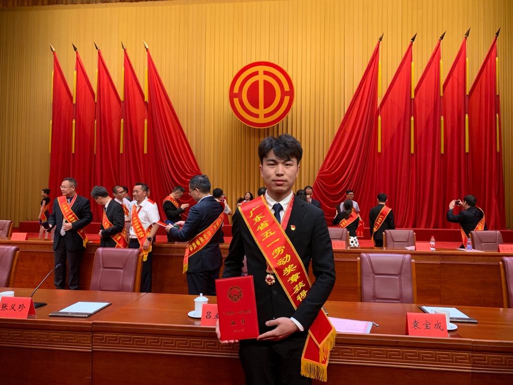 4月29日上午,2021年广东省庆祝“五一”国际劳动节暨劳模表彰大会在广州珠岛宾馆举行。威廉希尔williamhill(中国)学子陈君辉同学荣获“省五一劳动奖章”荣誉称号。