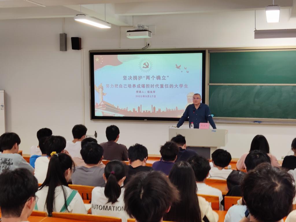 杨延军为同学们梳理了十九届六中全会精神、习近平总书记在中国人民大学考察时的重要讲话以及习近平总书记在庆祝中国共产主义青年团成立100周年大会上的重要讲话。首先带领同学们深入学习领会习近平总书记在党的十九届六中全会上的重要讲话和全会精神及《中共中央关于党的百年奋斗重大成就和历史经验的决议》的丰富内涵、精神实质、核心要义,从党的百年奋斗历程中汲取奋进的智慧和力量;然后带领同学们深入学习领会习近平总书记在中国人民大学考察时的重要讲话,讲述了习近平总书记对青年大学生的殷切期望,勉励新工科学子要立足新时代新征程,努力把自己培养成堪担时代重任的大学生,为中华民族的伟大复兴贡献力量。最后,他以习近平总书记在庆祝中国共产主义青年团成立100周年大会上的讲话勉励积极分子们努力向优秀学习,向身边的榜样学习,并对广大青年学习寄予三点期望:一是树立远大理想、厚植爱国情怀;二是担当时代重任、勇于砥砺奋斗;三是练就过硬本领、锤炼品德修为。