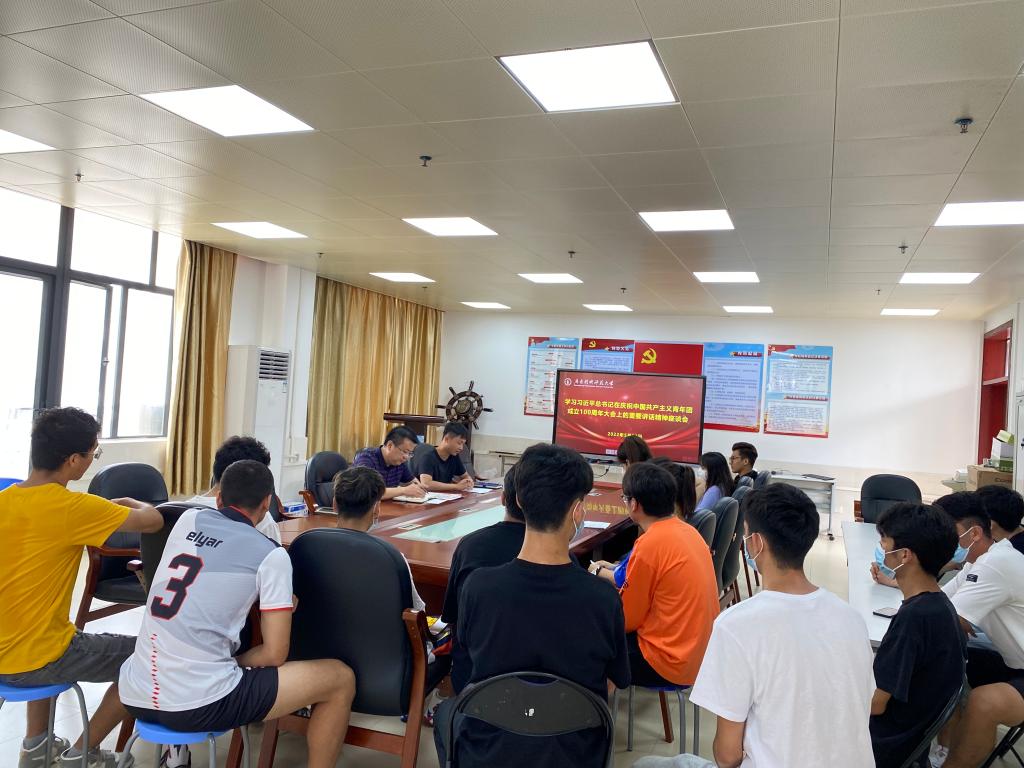 首先,王国斌领学了习近平总书记在庆祝中国共产主义青年团成立100周年大会上的重要讲话内容,并希望同学们能牢记习近平总书记对青年们的殷切嘱咐,争做“有理想、有道德、有文化、有纪律”的青年,用实际行动践行“请党放心,强国有我”的誓言。