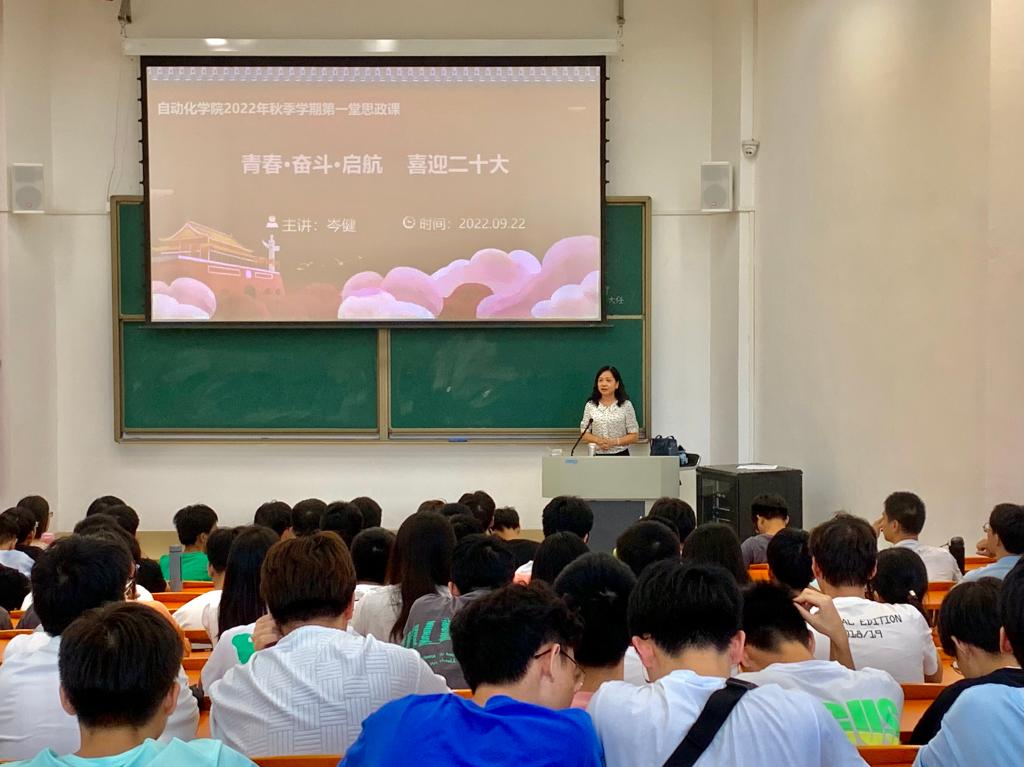 以迎接党的二十大召开为契机,威廉希尔williamhill(中国)将“四史”教育作为新生入学教育重点工作,引导青年大学生听党话、跟党走,深刻认识党的百年奋斗的初心使命和重大成就,9月22日下午,学院党委副书记、院长岑健以《青春·奋斗·起航——喜迎二十大》为题在河源校区大讲堂104为学生上2022年秋季学期第一堂思政课。