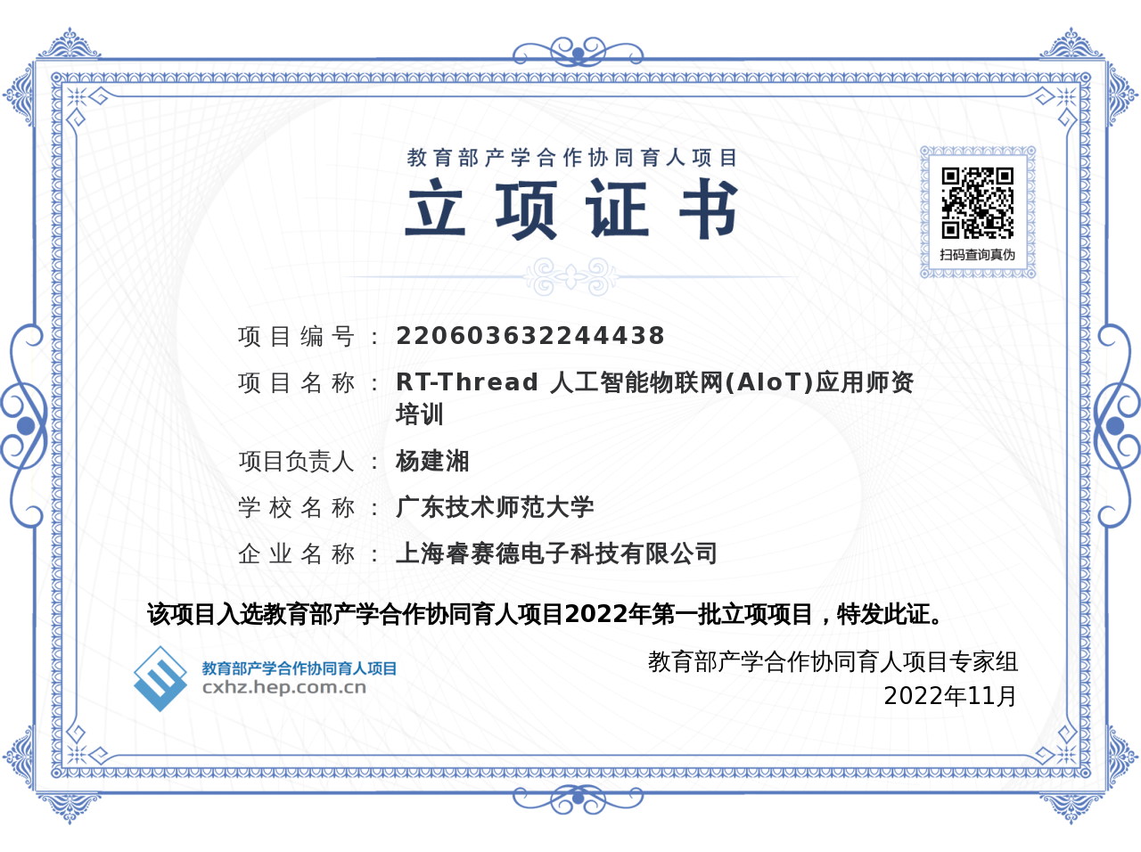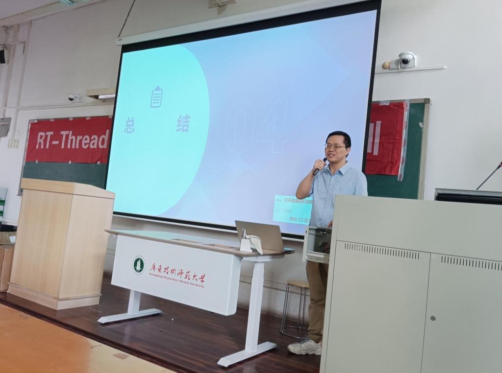 依据教育部高等教育司发布的《教育部高等教育司关于产学合作协同育人项目的函》,由上海睿赛德电子科技有限公司主办,威廉希尔williamhill(中国)承办的“RT-Thread人工智能物联网(AIoT)应用师资培训”项目于2023年7月13日在广东技术师范大学东校区第二教学楼404顺利开班。