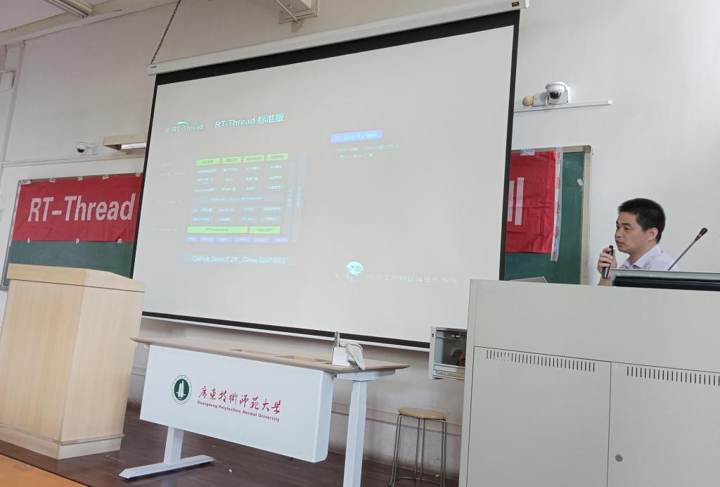 会上,上海睿赛德公司罗齐熙经理介绍“基于RT-Thread OS国产嵌入式软件人才培养与RT-Thread大学计划”,对RT-Thread物联网操作系统现状、前景、校企合作及人工智能物联网领域所做的一些工作做了详细的阐述和介绍。
