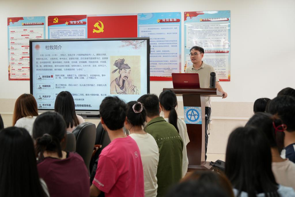 讲座伊始,在辅导员老师带领下,同学们集体诵读了诗人杜牧所作的唐诗《清明》,从诗词中感受古人的清明情结。辅导员老师从懂起源、明习俗、知感恩等方面对中国传统节日清明节进行了讲解,讲述了清明节的来源及演变,介绍了踏青、扫墓、插柳戴柳等传统习俗,随后,以成语“慎终追远”和家谱文化讲到了祖先崇拜、民族认同等内容;以“参天之木,必有其根;怀山之水,必有其源”引申到生生不息、感恩生命的话题;以“天地英雄气,千秋尚凛然”讲述了民族英雄、革命先烈的事迹;通过生动鲜活的古文诗句、名人典故、革命事迹,带领学生学习清明节背后中华民族认祖归宗、知恩报恩的传统文化,领悟中华文化博大精深、源远流长的重要内容。