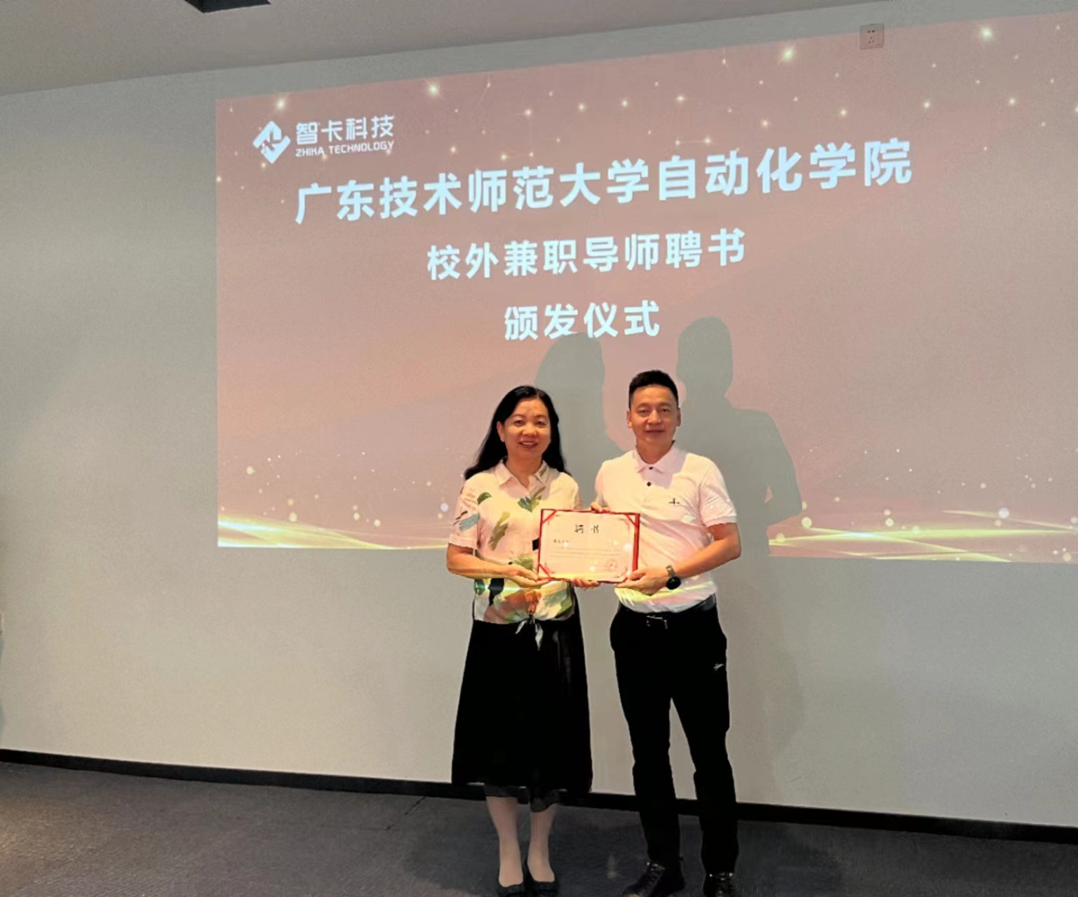 岑健院长对智卡科技的发展现状及发展理念表示肯定与赞许,并围绕企业发展状况、人才培养、以及高校人才培养的意见建议等重点问题,特别是物流大数据、智能制造、安全风险管控等方面,与智卡科技进行了深度沟通和学习交流。同时,校企双方还举行了校外专业实践教学基地挂牌仪式,岑健院长向廖俊总经理及公司法人代表柯茂果颁发了校外导师聘书。