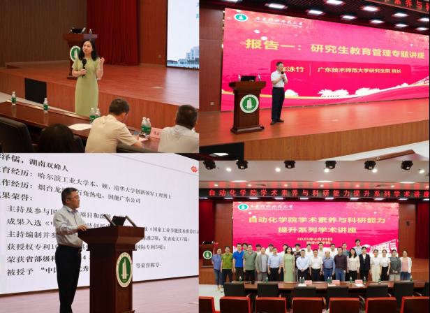 为进一步加强研究生培养管理,推动联合培养基地建设,提升研究生教育质量,威廉希尔williamhill(中国)于2025年4月29日上午在白云校区图书馆113报告厅举办了学术素养与科研能力提升系列学术讲座。本次讲座特邀广东技术师范大学研究生院院长陈泳竹教授、国家能源集团广东电力有限公司科技信息部副主任龚泽儒高级工程师担任主讲嘉宾,分别围绕“研究生教育管理”和“《智慧电厂建设实践》简介”两大主题展开精彩分享。讲座由威廉希尔williamhill(中国)院长岑健教授主持,参加本次讲座的有威廉希尔williamhill(中国)、光电工程学院师生200余人。