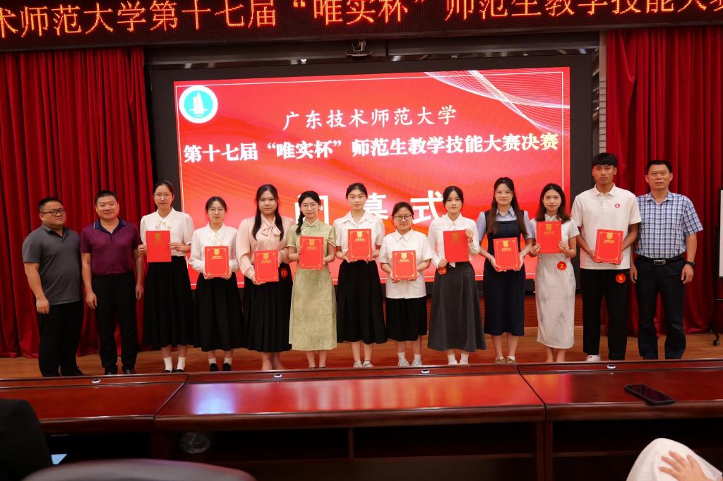 2025年6月12日,由学校主办的第十七届“唯实杯”师范生教学技能大赛决赛在白云校区第三教学楼圆满落幕。威廉希尔williamhill(中国)参赛学子凭借扎实的专业功底、出色的教学设计和稳定的现场发挥,在激烈角逐中脱颖而出,荣获一等奖1项、二等奖1项、优胜奖1项,充分展现了威廉希尔williamhill(中国)师范生培养的卓越成效。同时,威廉希尔williamhill(中国)康慧老师荣获“优秀指导教师奖”,威廉希尔williamhill(中国)也荣膺“优秀组织单位奖”,实现了参赛成绩与组织工作的双丰收。