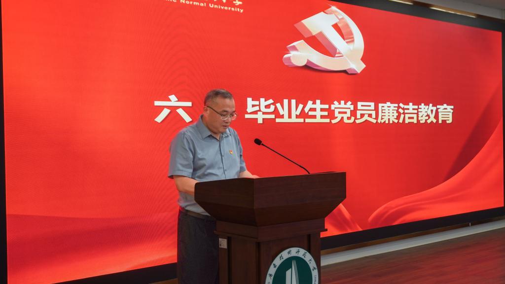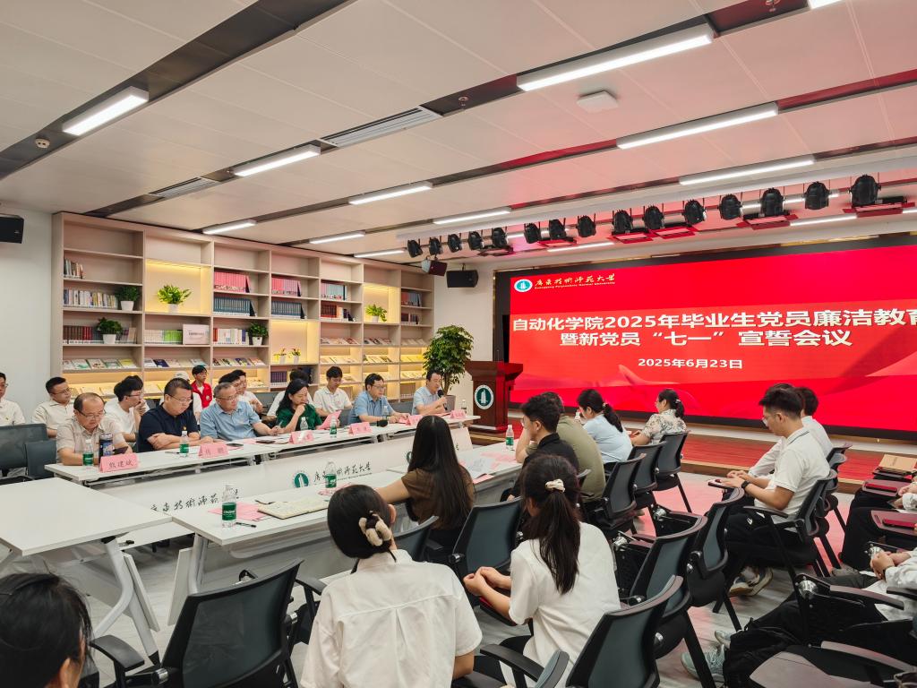 随后,杨延军书记为毕业生党员作廉洁教育。他强调,毕业是学生重要的里程碑,更是党员建功立业的新起点,对即将离开校园的毕业生党员,他提出三点希望,一要坚定理想信念,牢记初心使命,注重思想理论学习,与时俱进用党的创新理论武装头脑;二要严守纪律底线,以优良作风保持党员的纯洁性,始终秉持清醒的头脑,成为新时代社会清风正气的传播者与践行者,三要勇担时代使命,在强国建设中永葆党的先进性,在人工智能浪潮中勇立潮头,在实干苦干中练就过硬本领。他寄语毕业生党员要紧跟国家发展步伐,关注母校发展,在新的工作岗位上继续发挥先锋模范作用,为母校实现跨越式发展添砖加瓦、再建新功,为党和人民的事业贡献智慧和力量。
