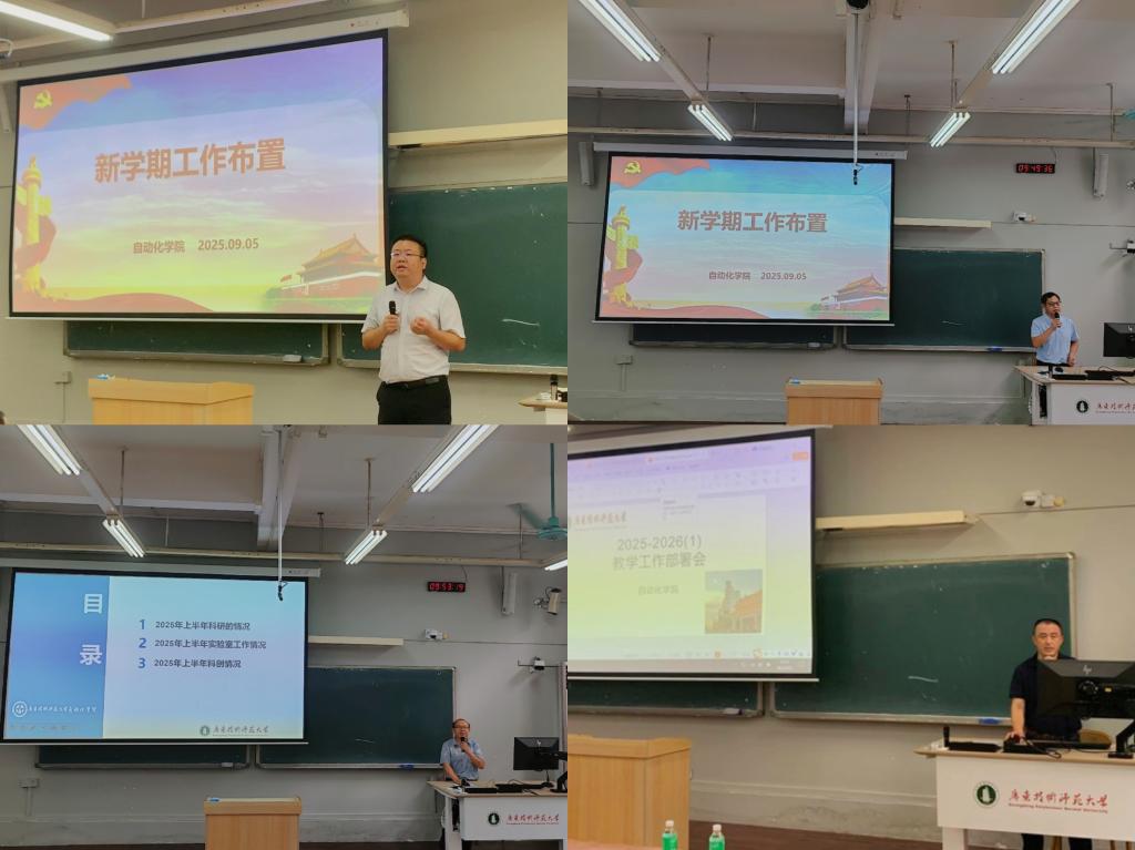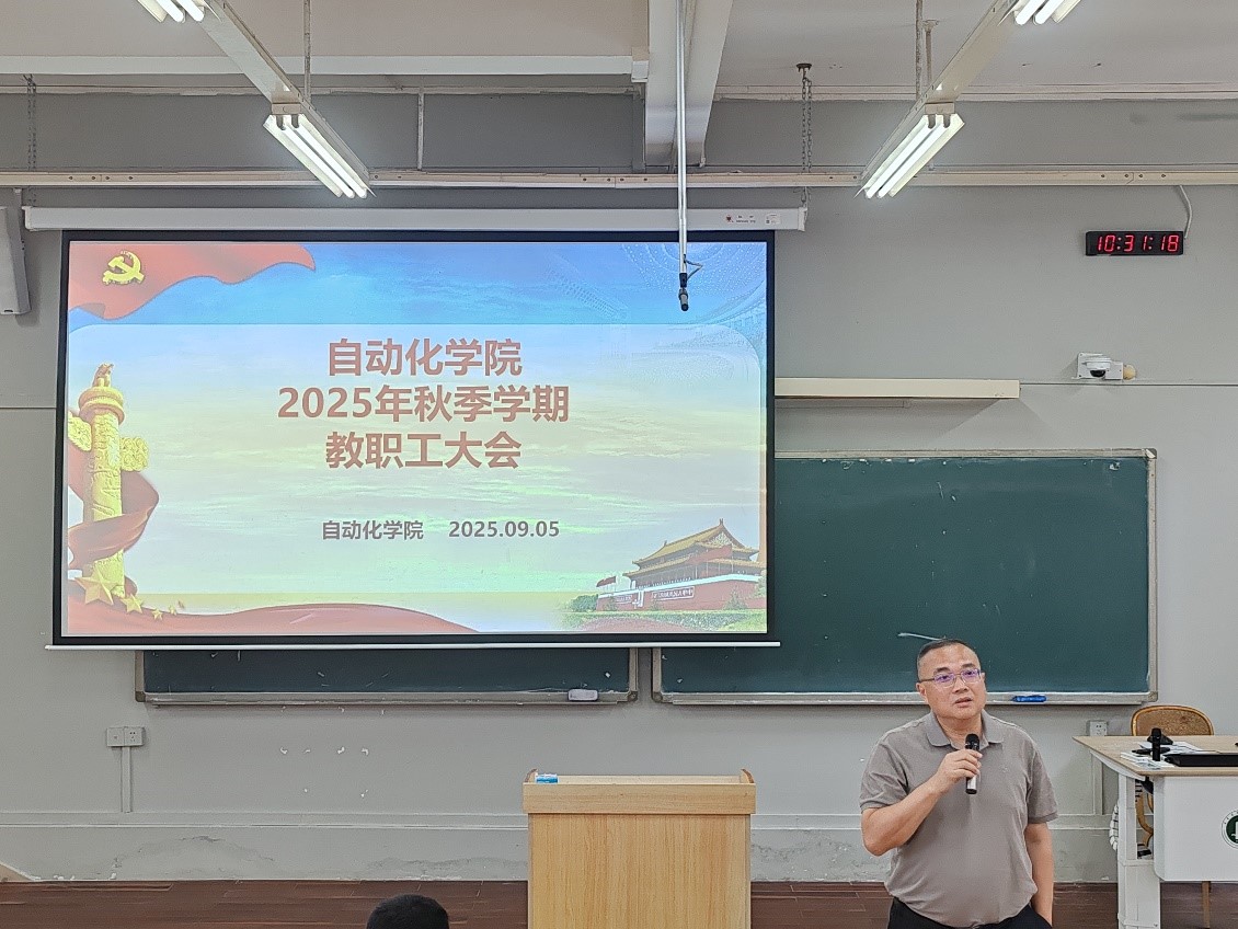 首先,岑健通报了暑期工作进展。岑健指出,暑假期间学院各项工作有序推进,主题教育持续开展,毕业生就业稳步落实;“千百万工程”深入实施,学院团队积极对接地方与企业需求;“十五五”规划与自动化专业工程认证材料撰写有序完成;低空技术与工程专业申报材料已提交教育部,特色鲜明;学院还积极参与学校“申博冲百”研讨及华为等企业合作项目。她对各位老师的辛勤付出表示感谢,并指出新学期新发展,学院的建设离不开每一个人的努力,全体教职工要以更加饱满的热情和昂扬的斗志,积极推进学院各项建设工作。