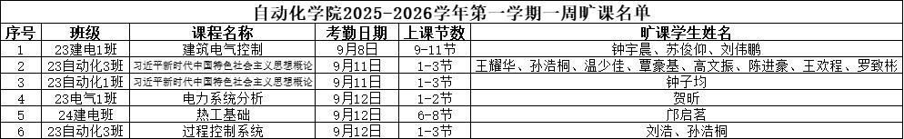 威廉希尔williamhill(中国)2025-2026学年第一学期1周课堂缺勤情况公示