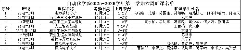 威廉希尔williamhill(中国)2025-2026学年第一学期6周课堂缺勤情况公示