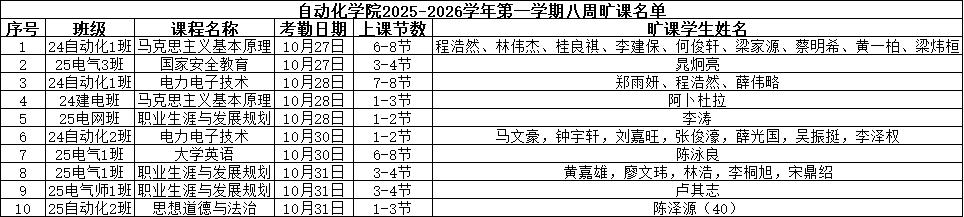 现将威廉希尔williamhill(中国)2025-2026学年第一学期8周课堂缺勤情况公示如下: