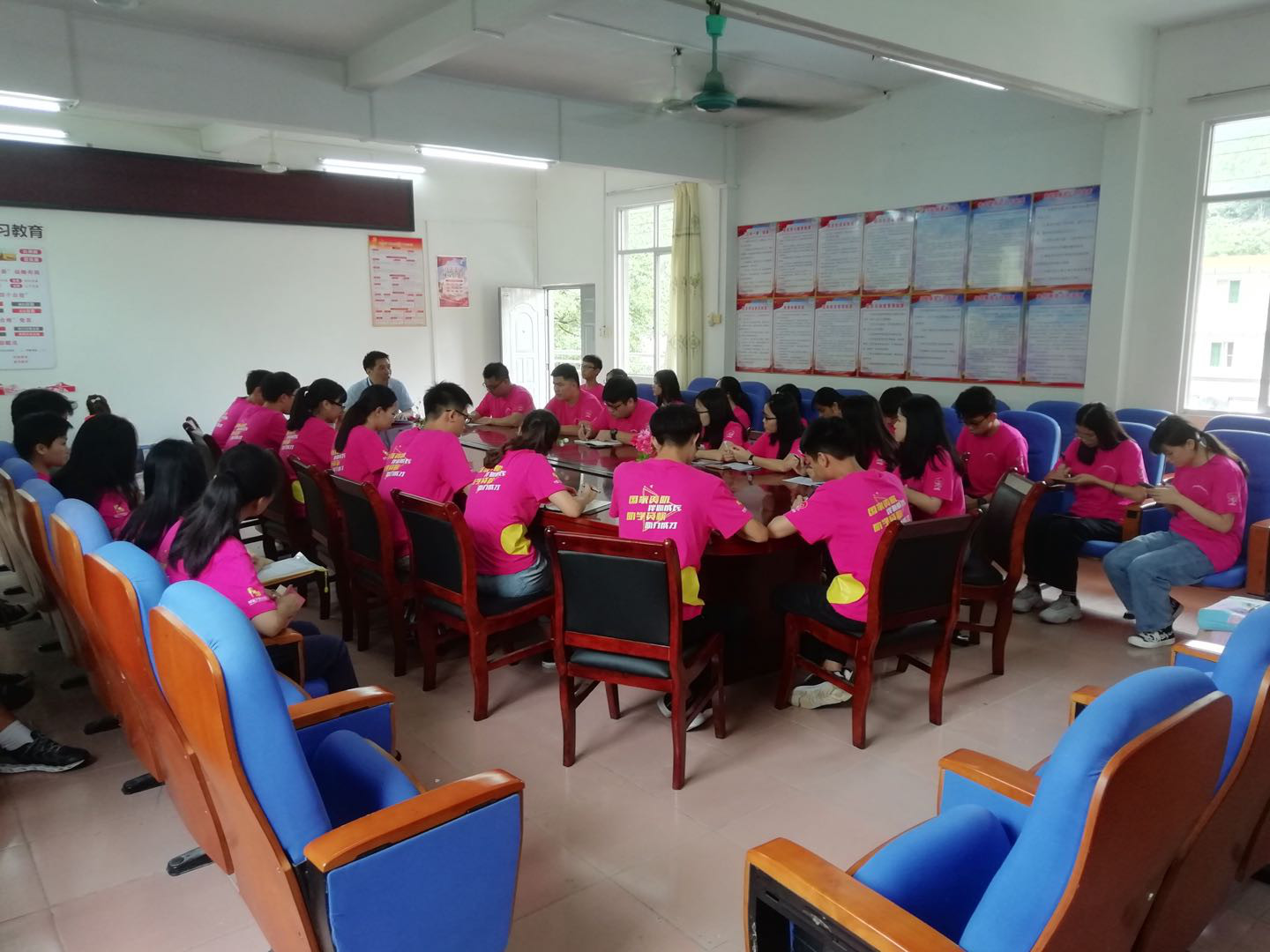 此行的目的是去南岗村进行助学政策的相关调研,向当地居民宣传国家资助政策。抵达之后,当地南岗中心学校的盘春风校长对我们进行了安顿,并给我们开了一个会议,对我们的到来表示欢迎,对我们的工作表示支持,并提醒我们下乡期间的一些注意事项。