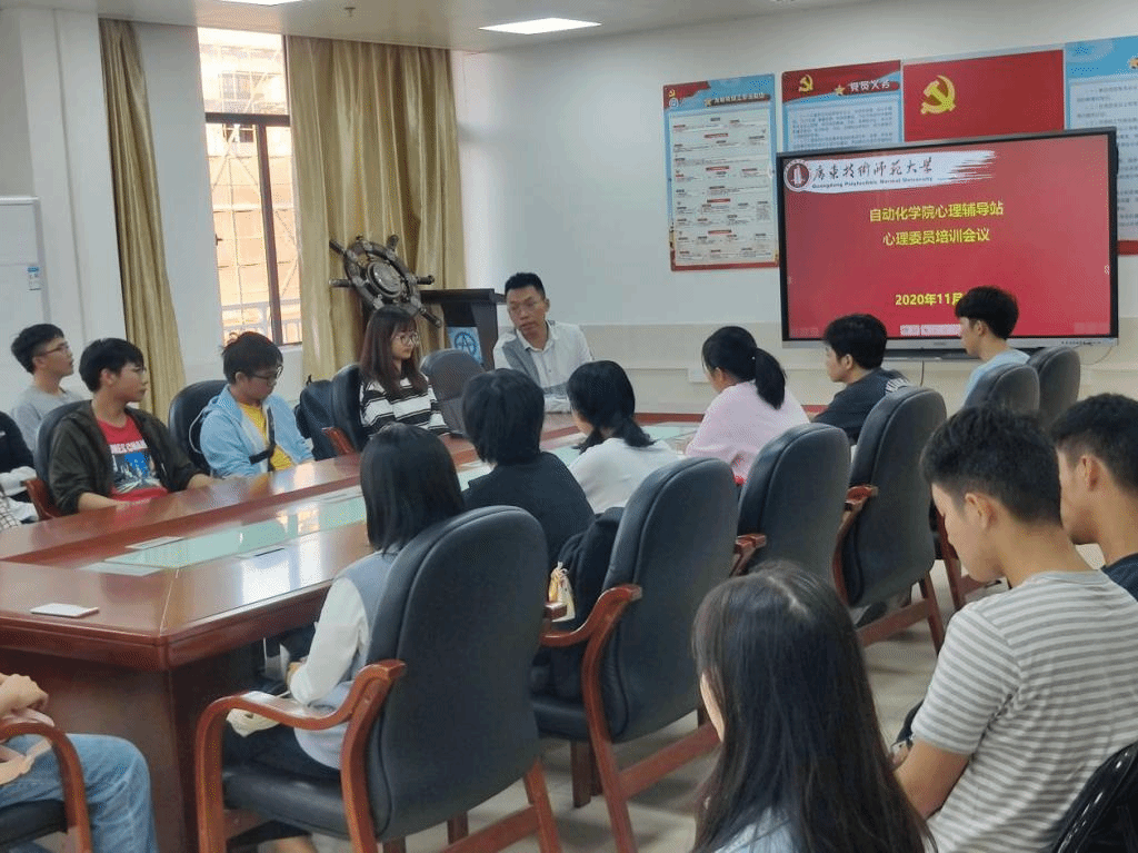 为了让新生心理委员更加清楚自己的工作职责,了解各项注意事项,11月12日下午学院心理辅导站在会议室召开了新生心理委员培训会议,参会人员为2018级换届、2018级专插本、2020级心理委员。