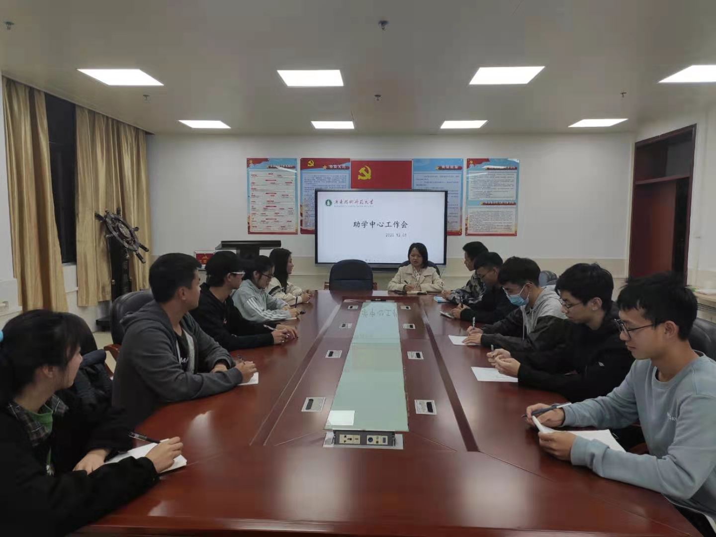 2020年12月1日18:00,威廉希尔williamhill(中国)助学中心在第一实训楼508召开助学中心工作会议,主持会议的是辅导员张晓兰,助学中心全体学生助理参加会议。