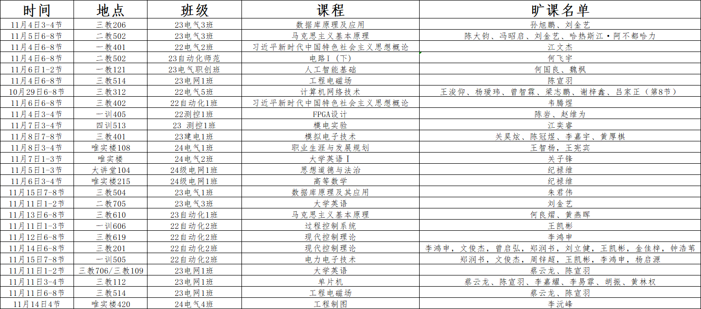 现将威廉希尔williamhill(中国)2024-2025学年第一学期10-14周课堂旷课情况公示如下: