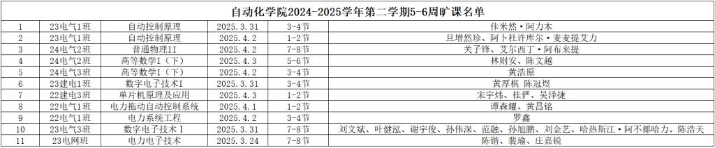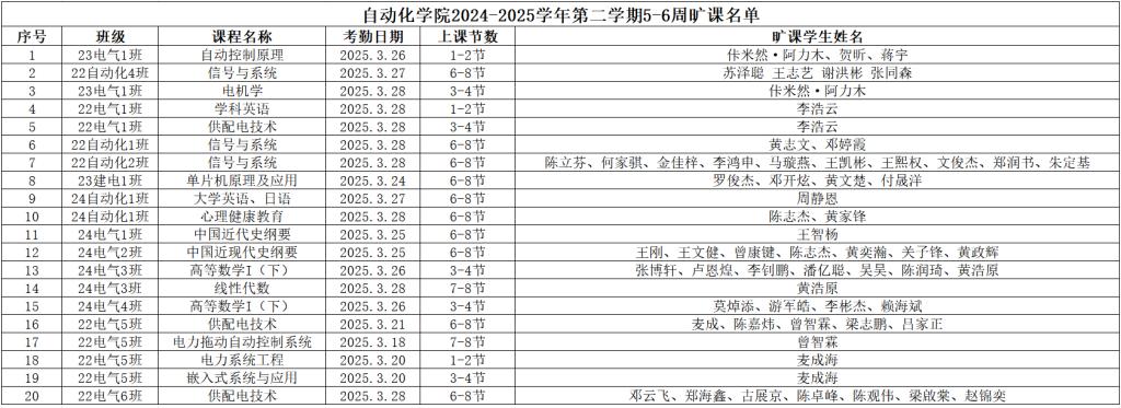 现将威廉希尔williamhill(中国)2024-2025学年第二学期5-6周课堂缺勤情况公示如下: