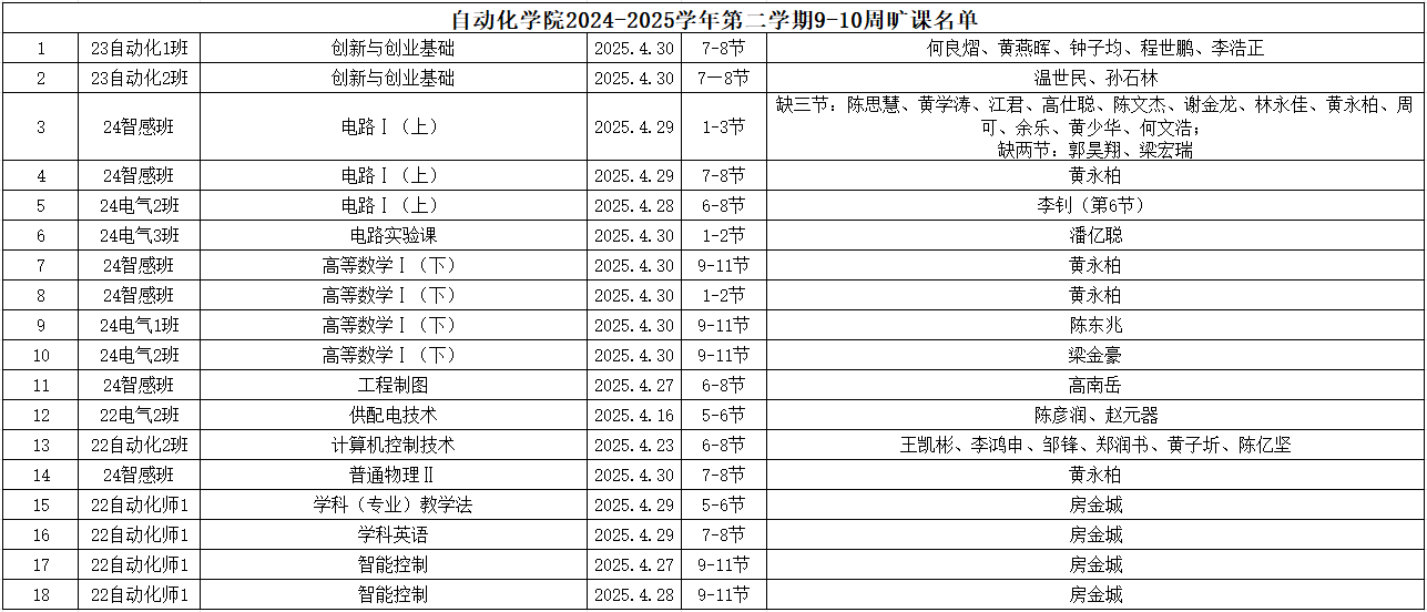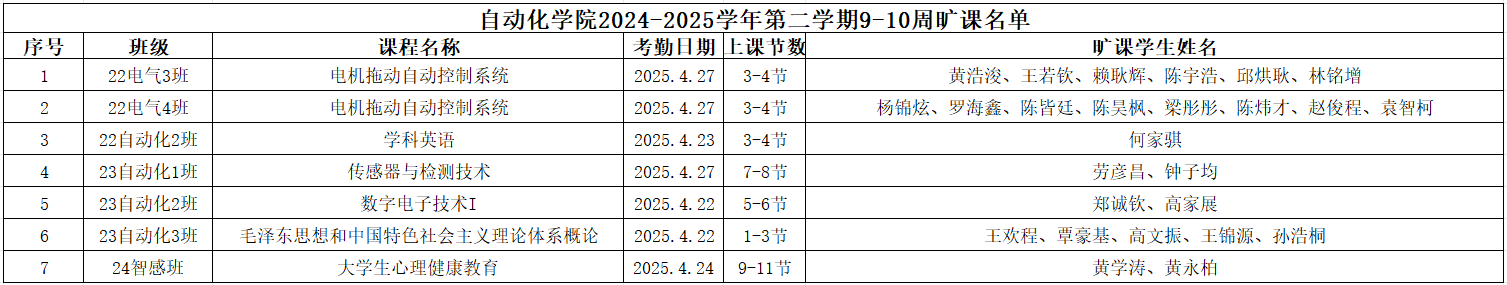 现将威廉希尔williamhill(中国)2024-2025学年第二学期9-10周课堂缺勤情况公示如下: