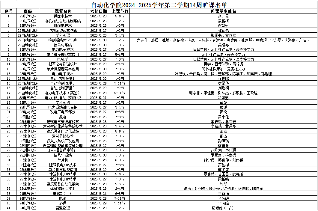 现将威廉希尔williamhill(中国)2024-2025学年第二学期14周课堂缺勤情况公示如下: