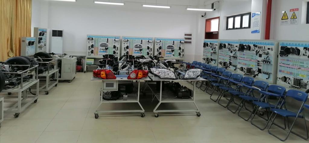汽车电子及车身网络室位于白云校区实训楼6楼609室,使用面积100m2。主要仪器设备:ABS系统实验平台、CAN-BUS车身网络实验平台、安全气囊实验平台、倒车雷达实验平台、电控汽油喷射系统实验平台、发动机解剖实验平台、丰田卡罗拉传动系统解剖动态平台、汽车空调系统实验平台、汽车全车电器实验平台等,能同时容纳40人次进行实验实训,使用效率达250人/年。