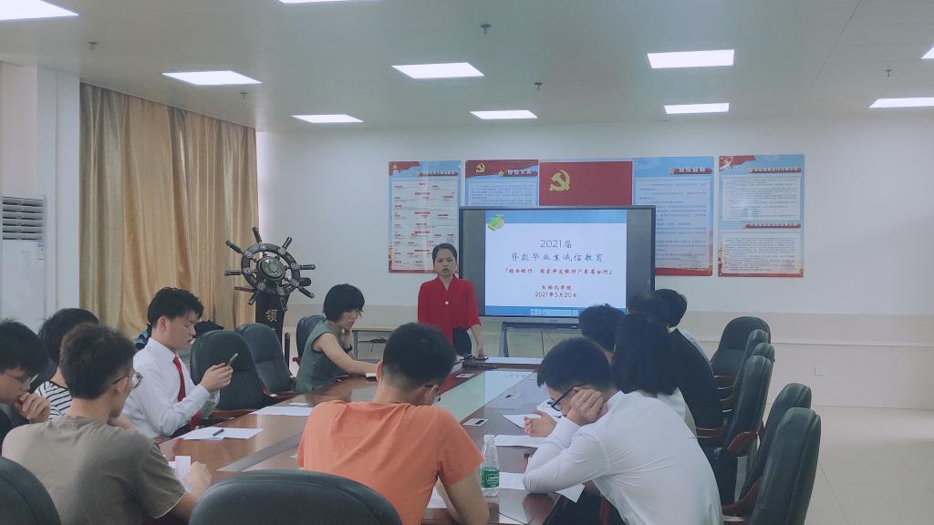 为了更好地做好资助育人工作,威廉希尔williamhill(中国)于2021年5月20日在第一实训楼508会议室,开展2021届贷款毕业生毕业确认暨诚信教育活动,2021届校园地和生源地贷款毕业生参会,辅导员张晓兰、黄晓东出席会议。
