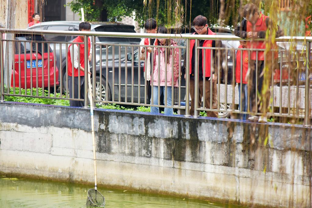 活动前,苏晓菁对参与的志愿者进行了巡河志愿服务培训,分别讲解了此次巡河护河活动地点、工作内容、具体分工以及安全注意事项。活动中,在村干部的带领下,一队沿着河道区域,手持打捞工具对何㘵村河道、水塘的落叶、纸屑、包装袋等垃圾进行清理,另一队向周边商铺、居民派发河道清淤的活动宣传单,呼吁更多的居民群众主动参与到护河行动中,共同守护美丽家园。活动结束后,师生们纷纷表示,将以此次志愿活动为契机,牢固树立和践行绿水青山就是金山银山的理念,为生态文明建设作出积极贡献。