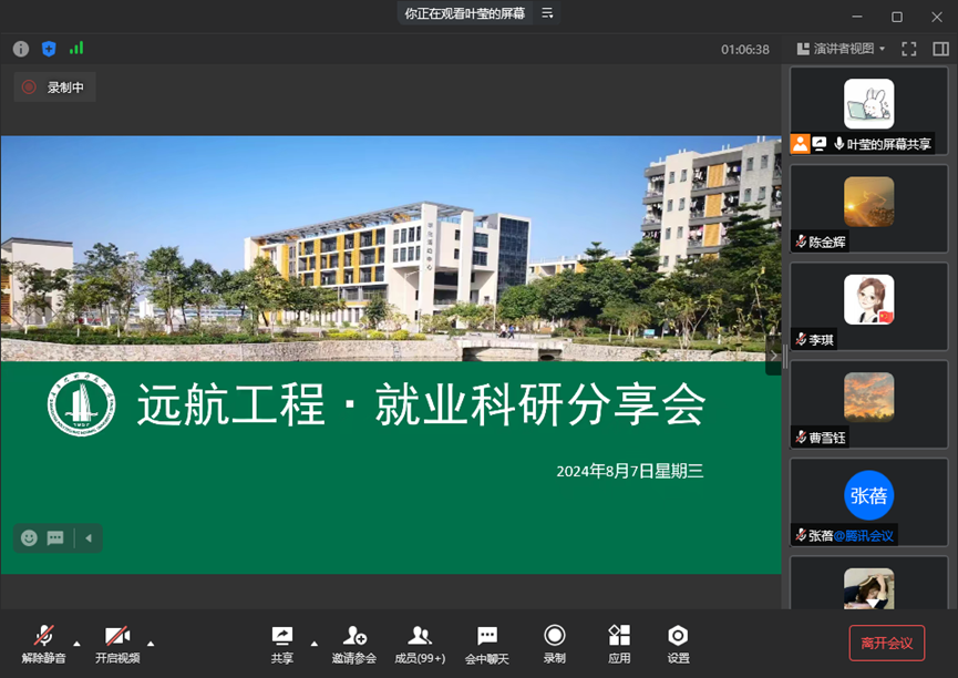 为持续推进学生高质量就业,发挥学院“老带新”的就业帮扶传统,营造浓厚的就业氛围。2024年8月7日晚,威廉希尔williamhill(中国)顺利开展了“远航工程”研究生就业科研分享会。威廉希尔williamhill(中国)研究生辅导员陈金辉、6位2021届优秀毕业生以及来威廉希尔williamhill(中国)的近百余名研究生一同参与了线上分享会。