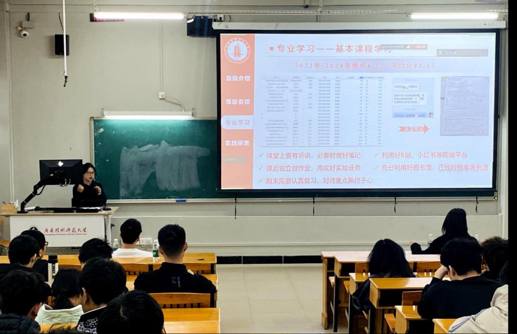 活动中,2023-2024学年国家奖学金获得者吕美凤从三个方面分享自己的学习经验。一是思想引领,她强调树立正确价值观和坚定理想信念,面对学习困难时保持积极态度的重要性。二是专业学习,她建议同学们重视基础知识积累,构建完善知识体系,并注重理论与实践相结合;三是实践探索,她从参与过的科研项目和实践活动着手,鼓励同学们积极参与科创活动,锻炼创新思维和解决问题的能力。同时,她还呼吁同学们通过志愿活动回馈社会,提升自我价值。