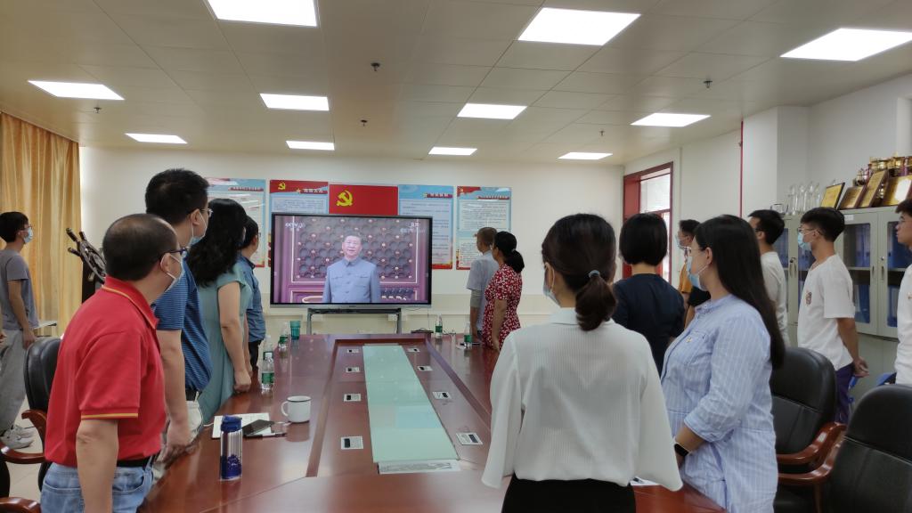 2021年7月1日,在举国上下庆祝中国共产党成立100周年的重要时刻,威廉希尔williamhill(中国)师生党员在学院会议室集体观看庆祝中国共产党成立100周年大会直播,学习习近平总书记重要讲话精神。