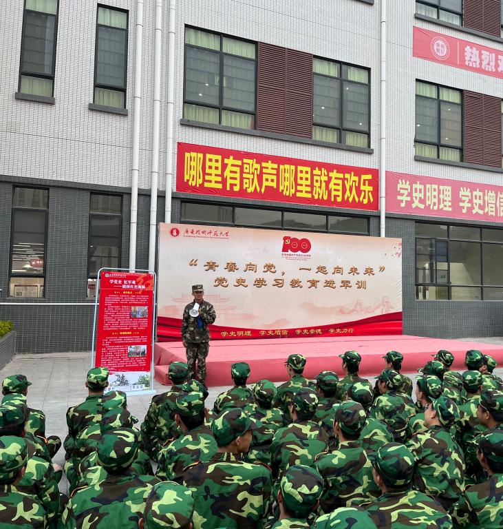 为做好2021级新生党史学习教育,用党的奋斗历程和伟大成就鼓舞斗志、明确方向,用军队的光荣传统和优良作风凝聚力量、砥砺品格。1月7日,威廉希尔williamhill(中国)在河源校区军训场地开展了主题为“学党史,忆军魂,赓续红色血脉”的系列主题教育活动。威廉希尔williamhill(中国)承训教官、2021级辅导员及全体参训学生参加了本次活动。
