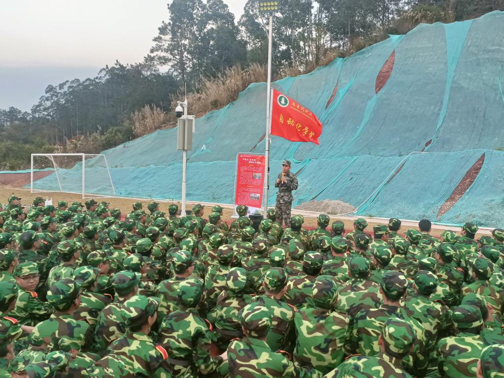 承训教官十连罗贵权连长为同学们介绍他们所处部队——岭南特战队的光辉历史,从平型关大捷、辽沈战役、平津战役、到后来抗美援朝战争和对越自卫反击战。经历过无数次的抗战,解救人民与危难之中,无数的前辈为保家卫国冲锋陷阵,在无数次的战斗中锤炼出钢铁般的意志。辅导员罗成志为大家详细的讲述了南昌起义的历史背景及意义,介绍了人民军队的创建及艰苦奋斗的发展史。一次次斗争都是一首首革命的战歌,进军的号角在耳边环绕,鼓励现场的同学们自觉继承革命传统,弘扬光荣传统,赓续红色血脉,汲取前进的力量。