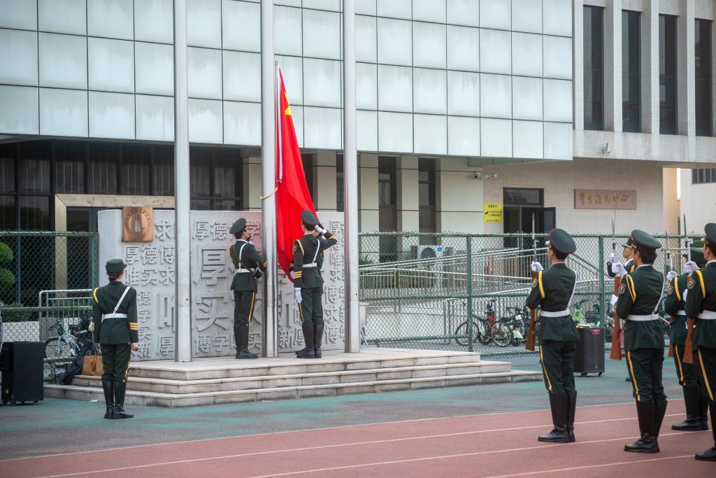 2023年11月6日上午,威廉希尔williamhill(中国)在白云校区田径场开展了一场主题为“学习党的创新理论,争做堪当民族复兴重任的时代新人”的升旗仪式,威廉希尔williamhill(中国)党委副书记蒋鹏、辅导员王国斌、团学学生干部、2023级研究生、2022级本科生参与了本次升旗仪式。