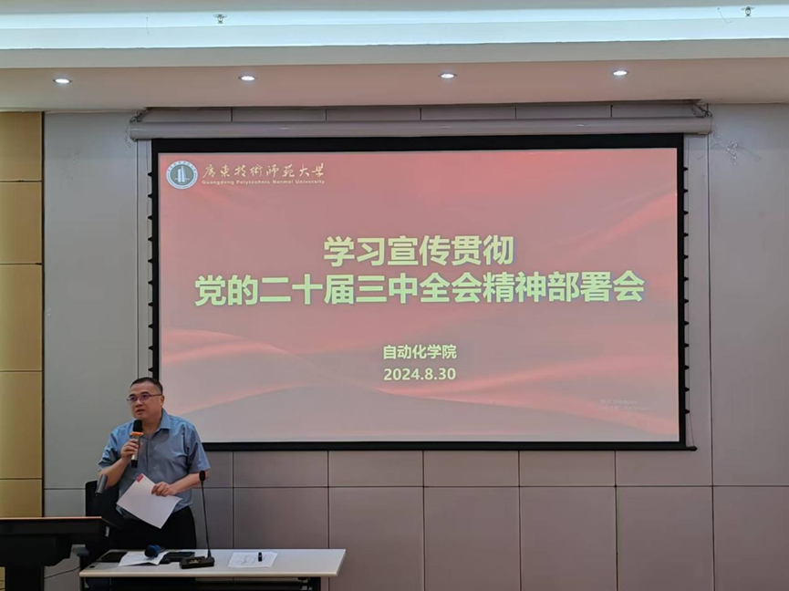 8月30日上午,自动化学院在东校区1教209召开全体教职员工大会,对学习宣传贯彻党的二十届三中全会精神进行动员部署。