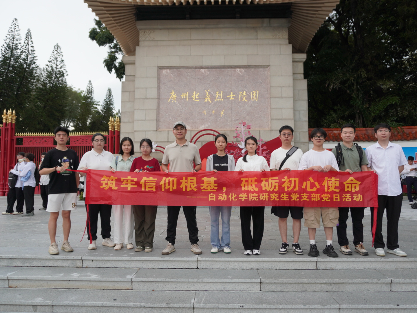随后,支部成员前往广州起义烈士陵园,在庄严肃穆的纪念碑前举行缅怀仪式。全体党员整齐列队,向为革命事业英勇献身的烈士鞠躬致敬,重温入党誓词。在陵园内的广州起义纪念馆中,大家通过沉浸式参观学习,深刻体会到革命先烈们在中国共产党的领导下为民族解放事业抛头颅、洒热血的崇高精神。