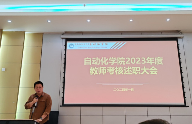 随后,学院开展2023年度教师考核述职大会,刘希等20位教师先后上台进行个人述职汇报。汇报结束后由全体教职工进行不记名投票,通过投票结果评定教师考核等级。
